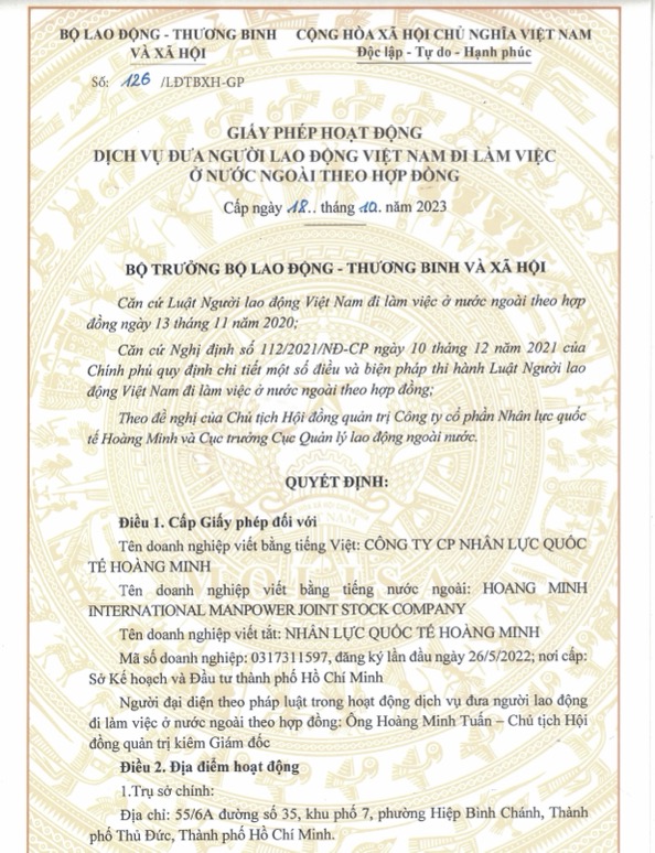 GIẤY PHÉP HOẠT ĐỘNG